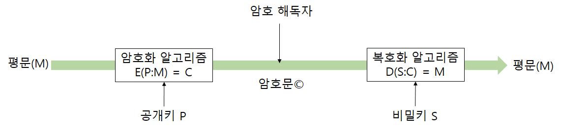 중요 정보를 보호하기 위해 평문을 암호화된 문장으로 만드는 절차 또는 방법으로 암호화 방식은 아래와 같음