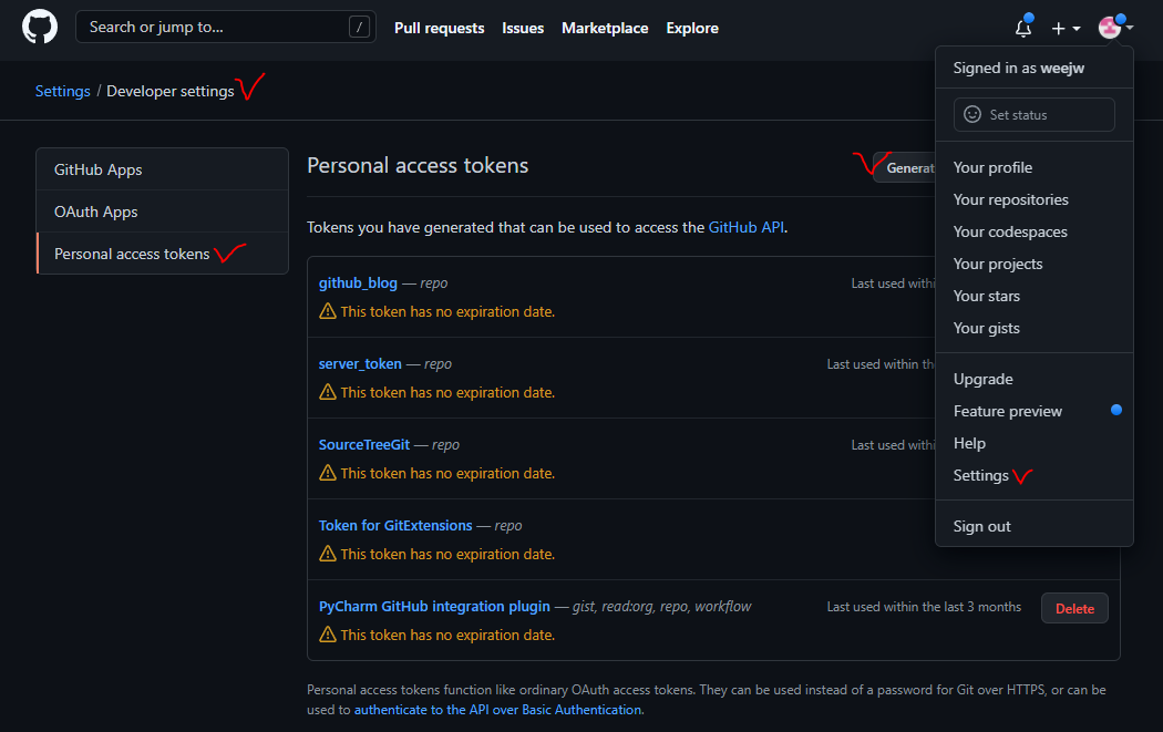 *추가 이 토큰은 나중에 젠킨스 환경설정에서 github server에 add key로 추가해주는것..