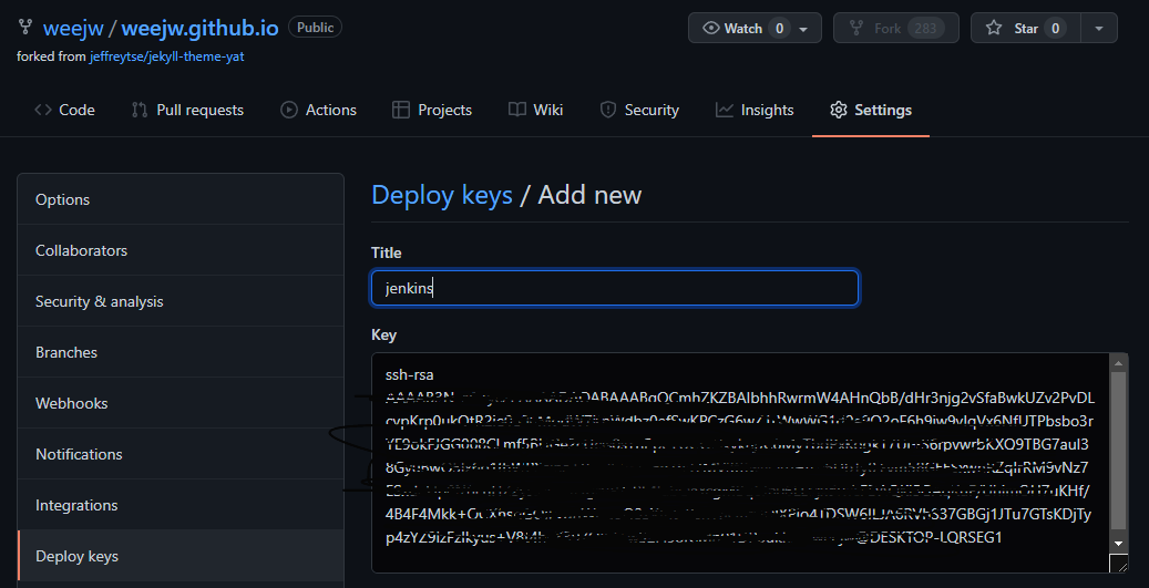 위에서 생성한 public key를 repo deploy keys에 추가한다.