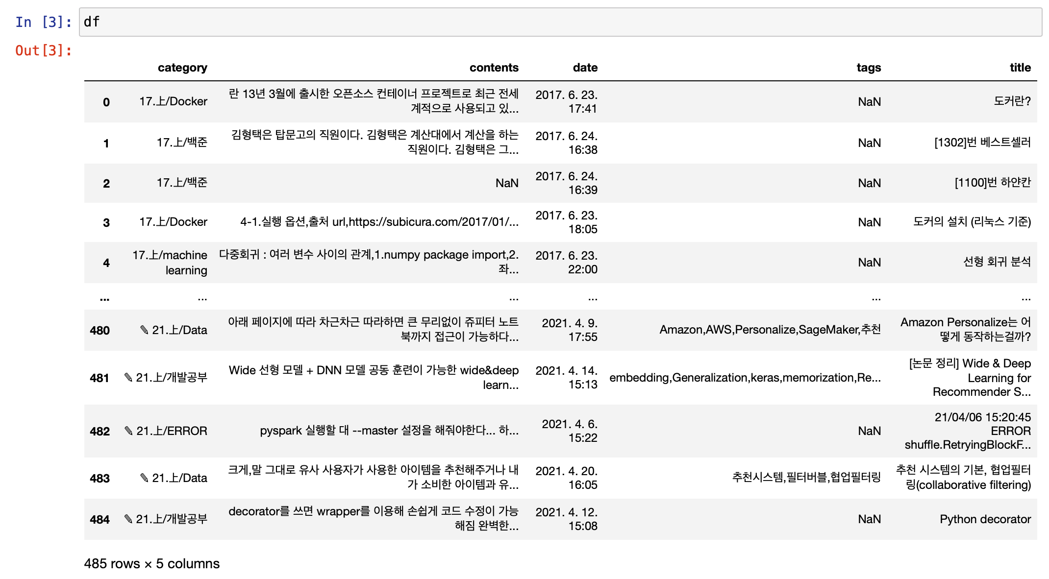 2021.03.25 - [✎ 21.上/Data] - [티스토리 게시글 추천 시스템 만들기] #3 클롤링 데이터 TF-IDF 계산하기